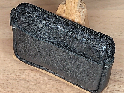 Porte-monnaie avec fermeture éclair et poche devant au format carte bancaire.