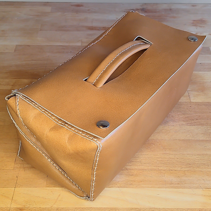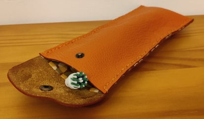 Pochette pour le savon ou petits accessoires en cuir orange, interieur tissu vintage.