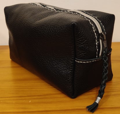 Trousse de toilette tres pratique et fonctionnelle ; ouverte elle se transforme en corbeille.