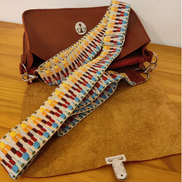 Coutures et zip bordeau, en accord avec la sangle aux couleurs estivales qui donnera du pep's à votre look.